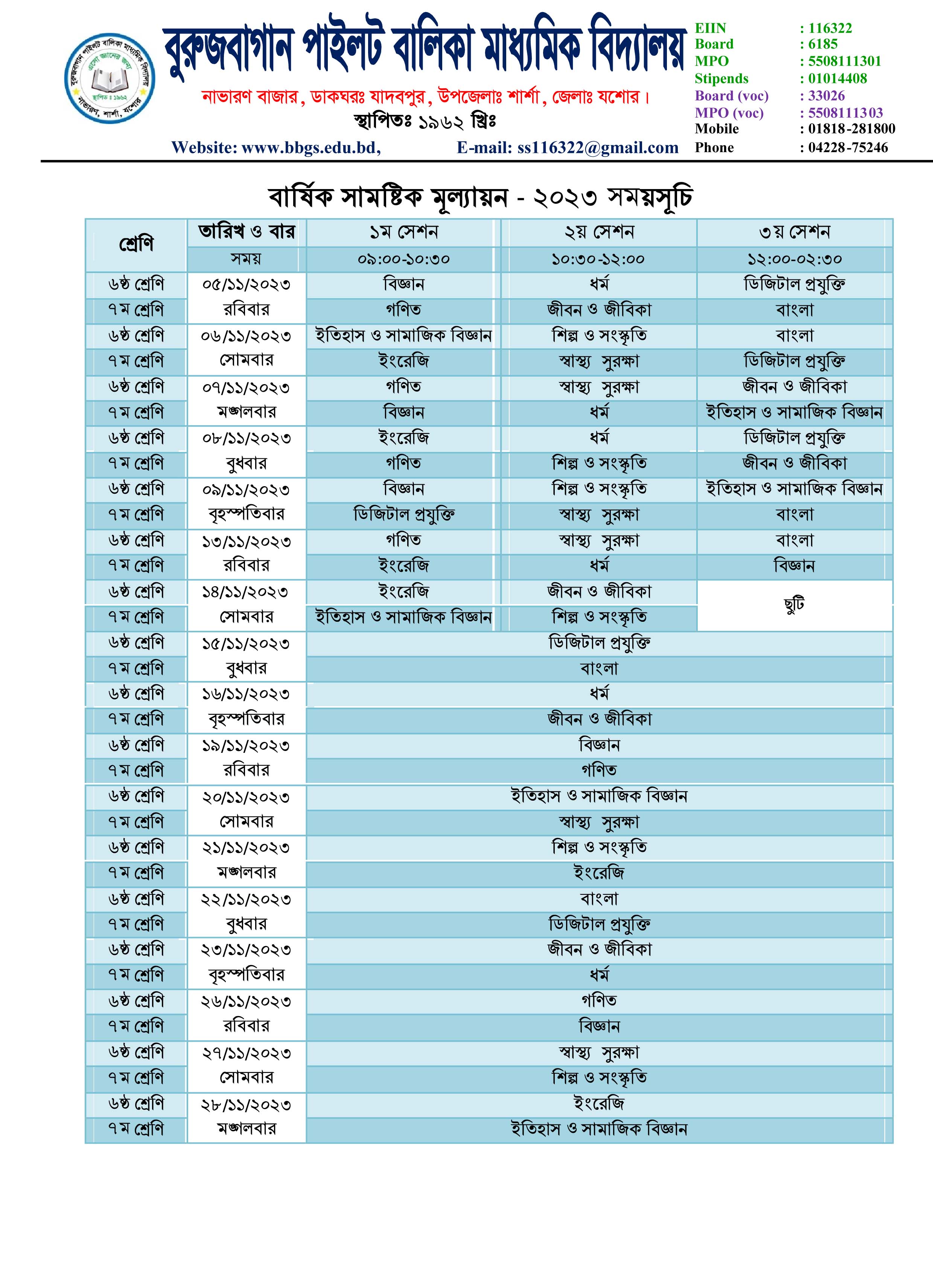 ষষ্ঠ ও সপ্তম শ্রেণির বার্ষিক সামষ্টিক মূল্যায়ন সময়সূচি |