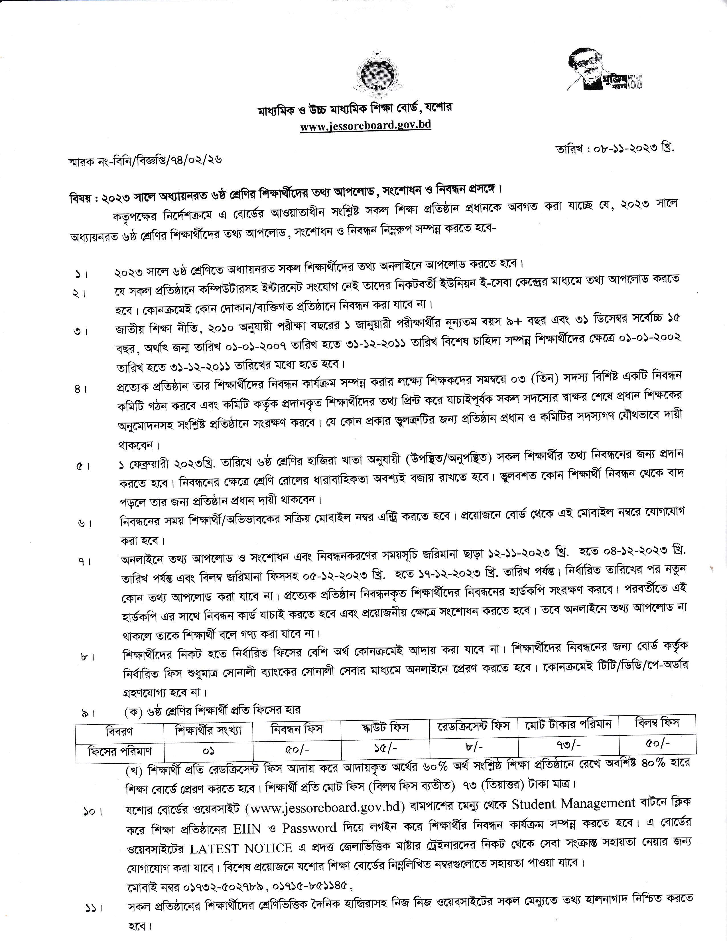 ২০২৩ সালে অধ্যায়নরত ৬ষ্ঠ শ্রেণির তথ্য আপলোড, সংশোধন ও নিবন্ধন সংক্রান্ত |