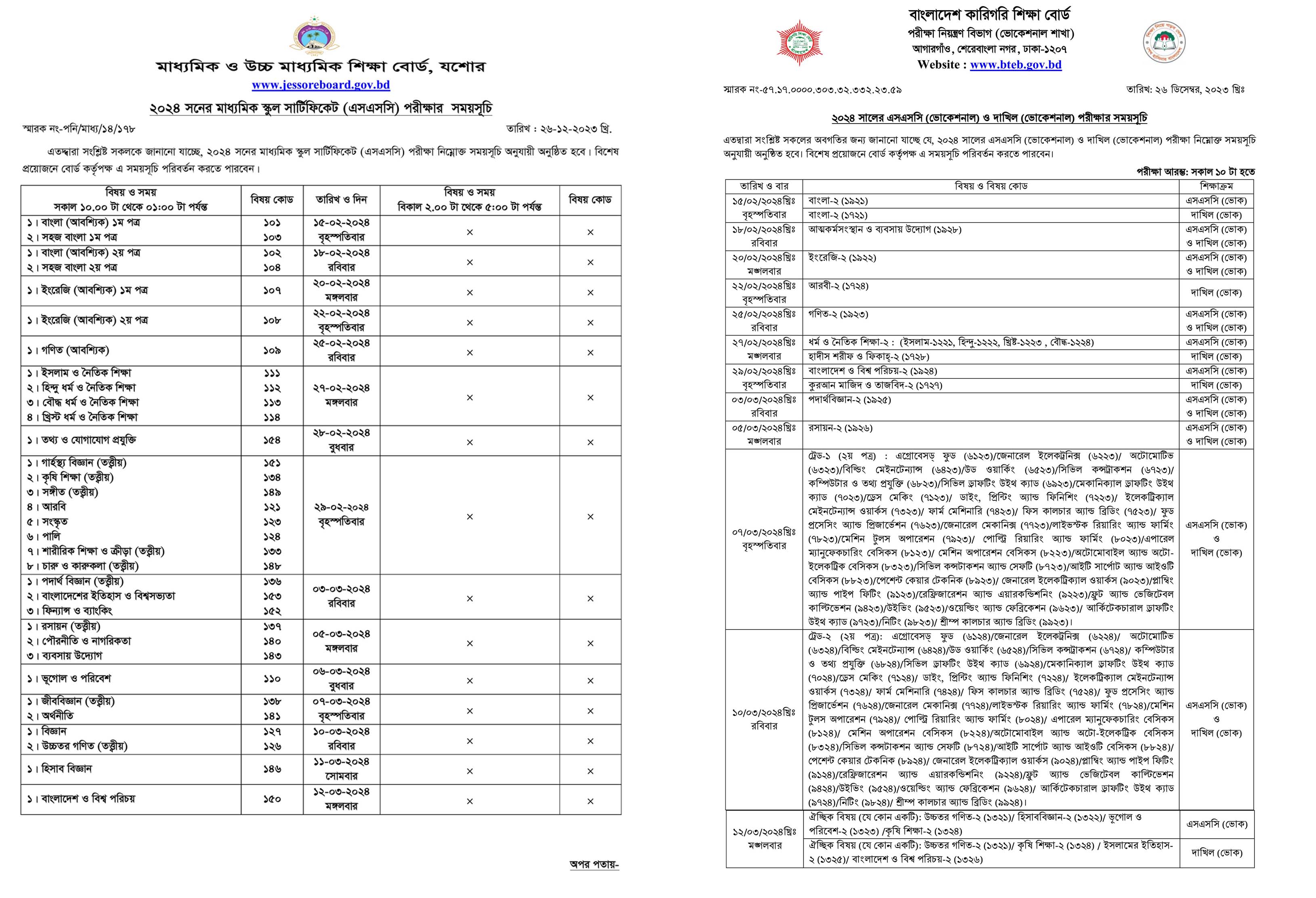 ২০২৪ সালের মাধ্যমিক স্কুল সার্টিফিকেট (এসএসসি ও এসএসসি ভোক) পরীক্ষার সময়সূচি |