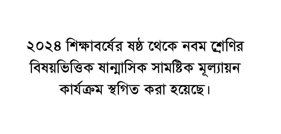 ২০২৪ শিক্ষাবর্ষের ষষ্ঠ থেকে নবম শ্রেণি মূল্যায়ন কার্যক্রম স্থগিত প্রসঙ্গে |
