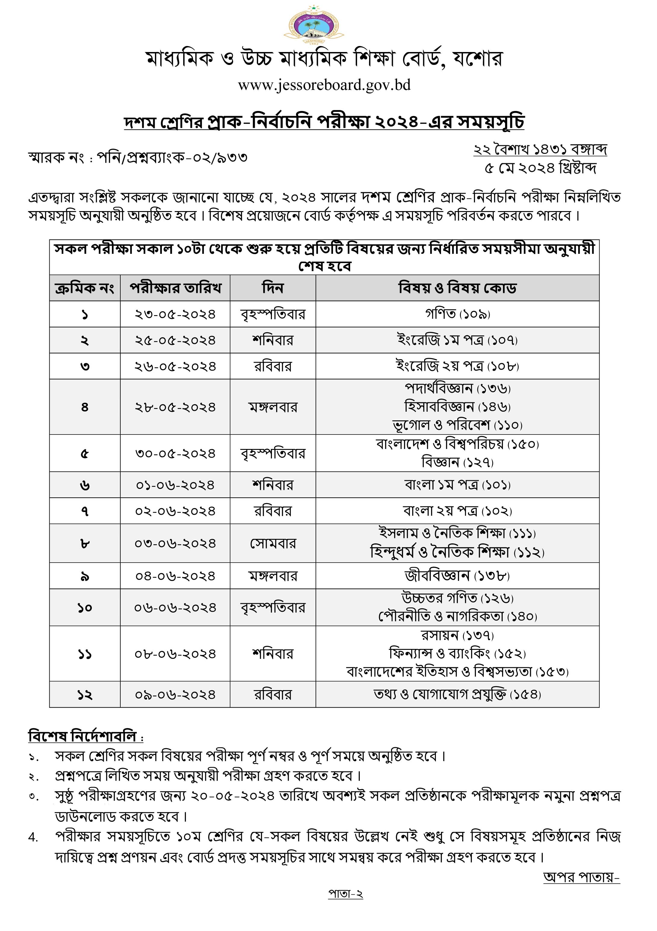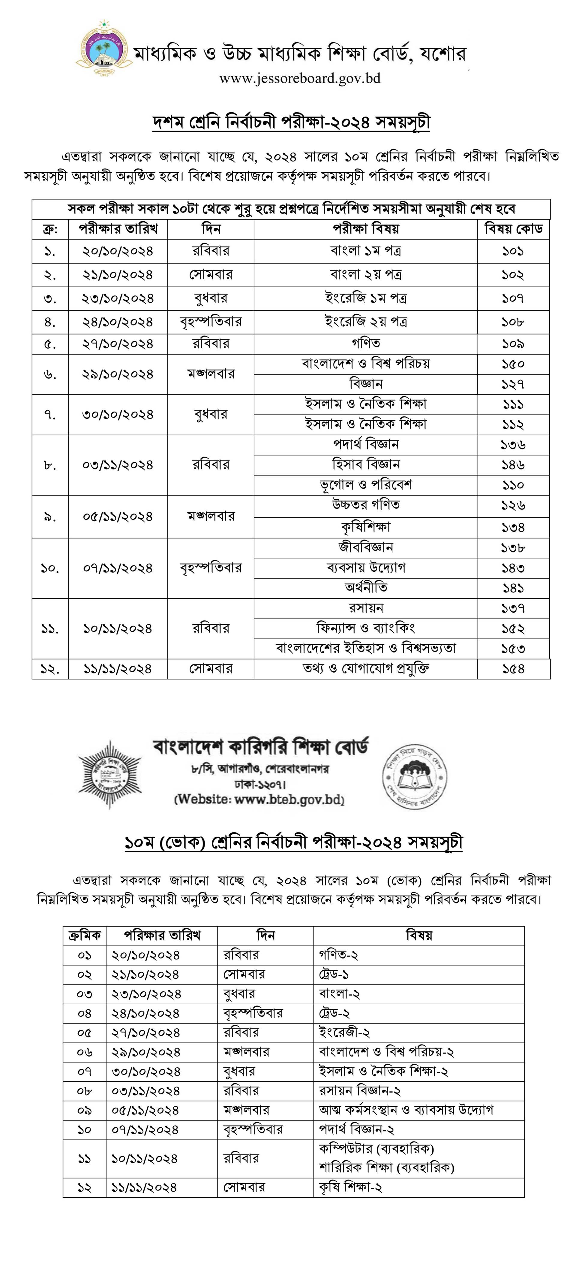 ১০ম ও ১০ম (ভোক) নির্বাচনী পরীক্ষা ২০২৪ সময়সূচী সংশোধিত |