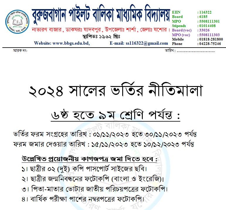 ৬ষ্ঠ হতে ৯ম শ্রেণি পর্যন্ত ভর্তি ফরম বিতরণ সংক্রান্ত বিজ্ঞপ্তি |