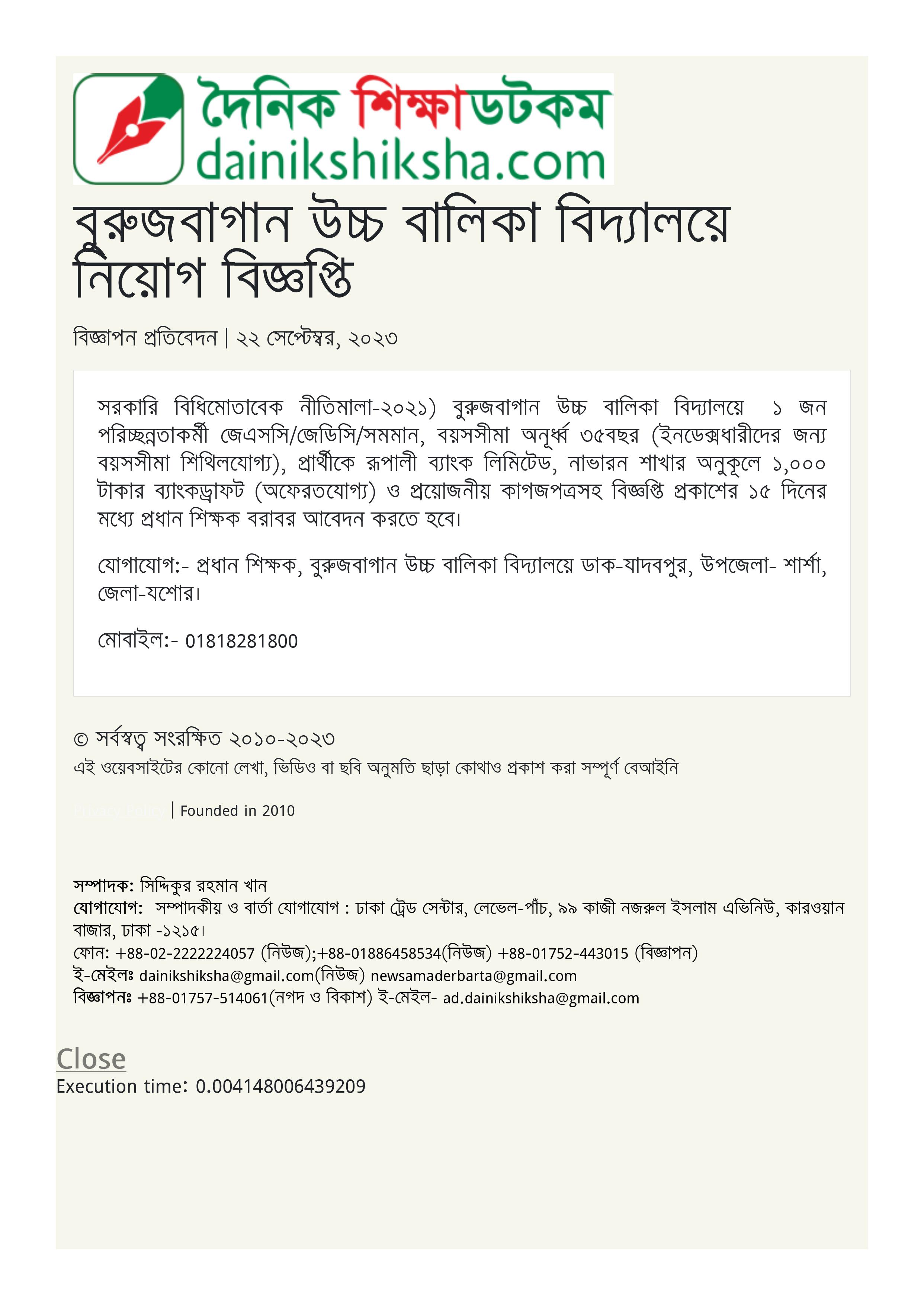 বুরুজবাগান পাইলট বালিকা মাধ্যমিক বিদ্যালয়ে নিয়োগ বিজ্ঞপ্তি |